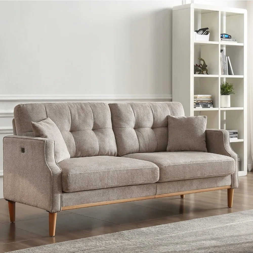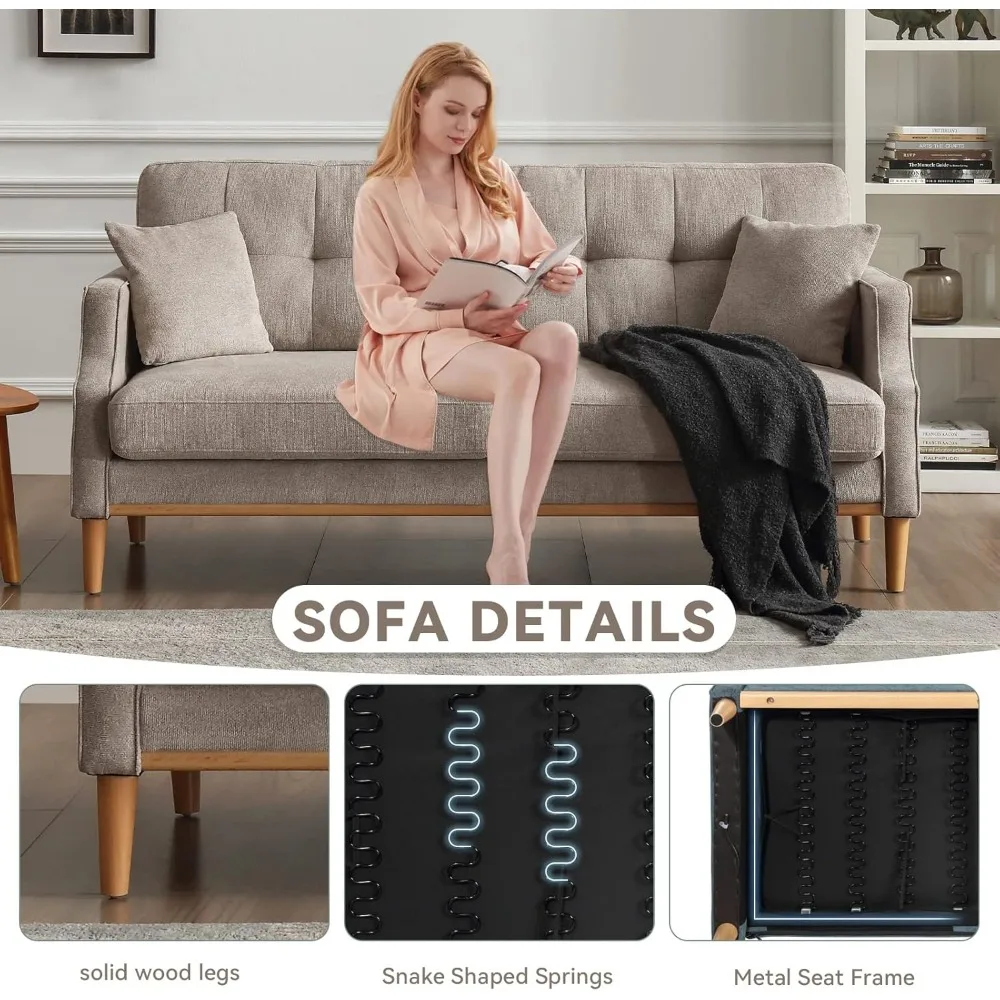 - The sofa is built with a sturdy metal frame, ensuring it is hard to be affected by dampness and never loses its shape, promising 5-8 years of use. The oak wood legs provide additional support for this 3seat couch.
